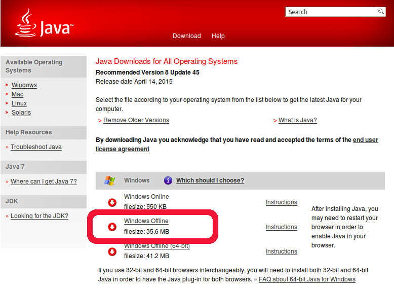 At the time of writing, this is the link from where you can download a Java Runtime Environment that differs from the automatically suggested download (e.g. Windows 64-bit): https://java.com/en/download/manual.jsp