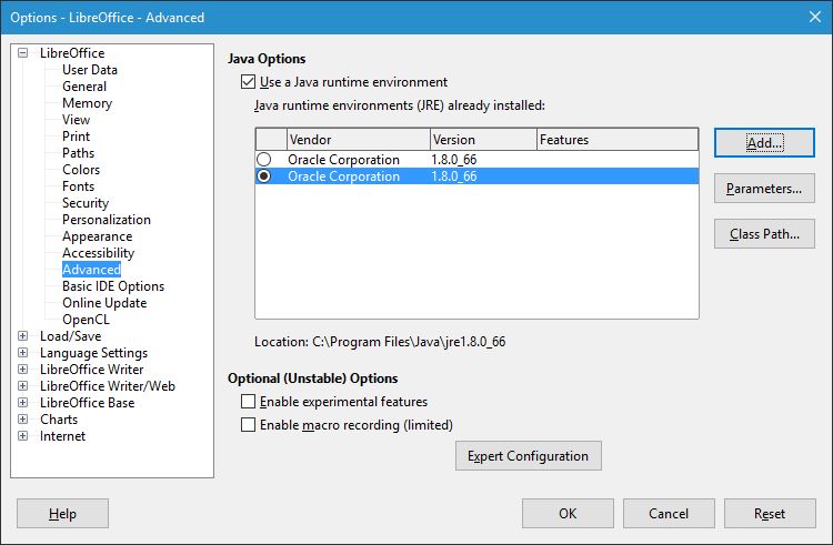32-bit Java on 64-bit machine: C:\Program Files (x86)\... works with OpenOffice and 32-bit LibreOffice