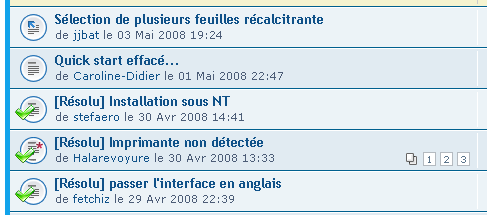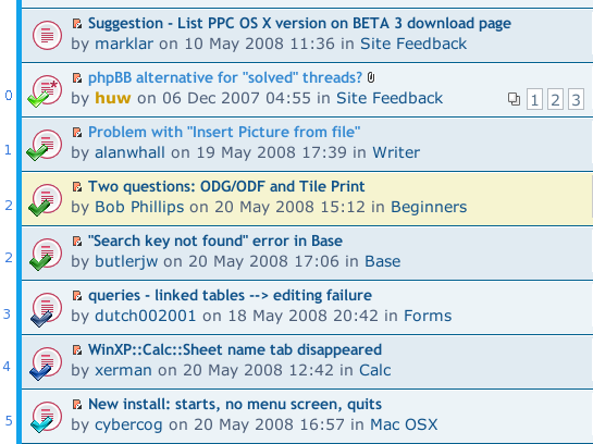BTW: I think 2 icons are fine, one for solved threads and one for issues, the 3rd one (used for duplicates in the French forum) has no real added value IMHO since duplicates are deleted after a while. For issues, I find the 'radioactive' one has a better visibility.