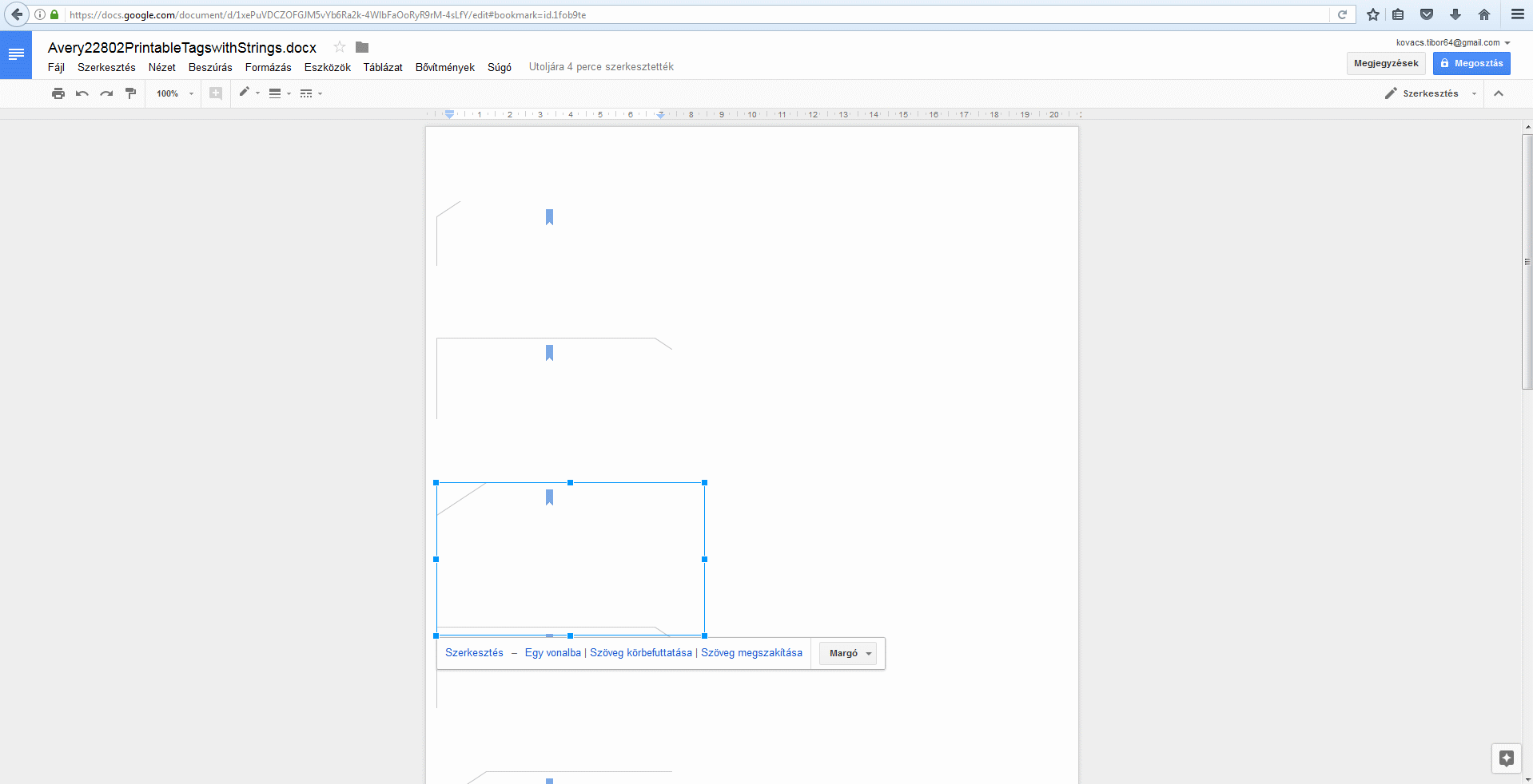I am gearing up for my favorite holiday and am making all my gifts by hand. For this reason, I want to design my own gift tags and print them. I take a medication that makes my hands shaky, so cutting them out by hand is not an option. For this reason I need one that I can just tear off. I want to use the attached template that should look like this: https://www.avery.com/templates/22802 It comes in two editable versions but neither work for me.