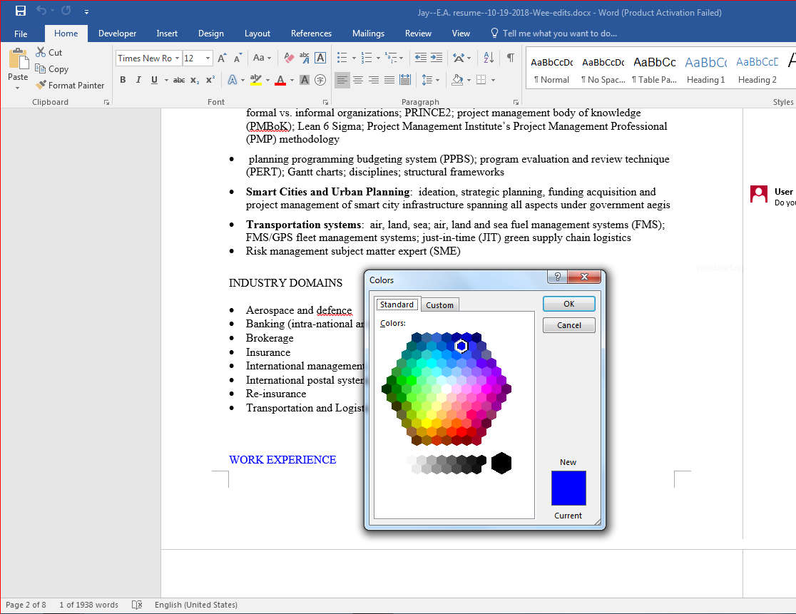 jrkrideau: To answer your question, to set the color I simply clicked the "Font Color" button in the menu ribbon.