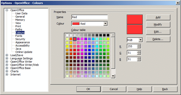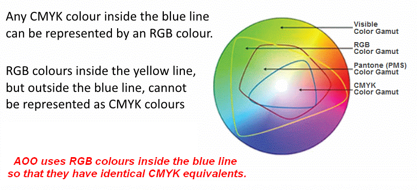 AOO uses the RGB colour model where the RGB colours in the palette are carefully chosen so as to map onto equivalent CMYK values which will be used when the document is printed.rhimbo wrote:However, I cannot see how to determine the attributes of the color definition, such as the RGB channel values or the values for whatever color model is used.