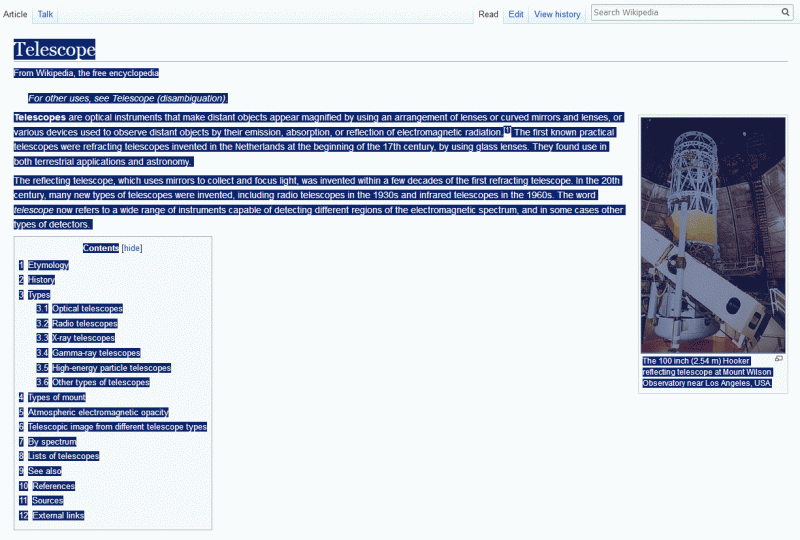 See https://en.wikipedia.org/wiki/Telescope where I copied all the highlighted material.