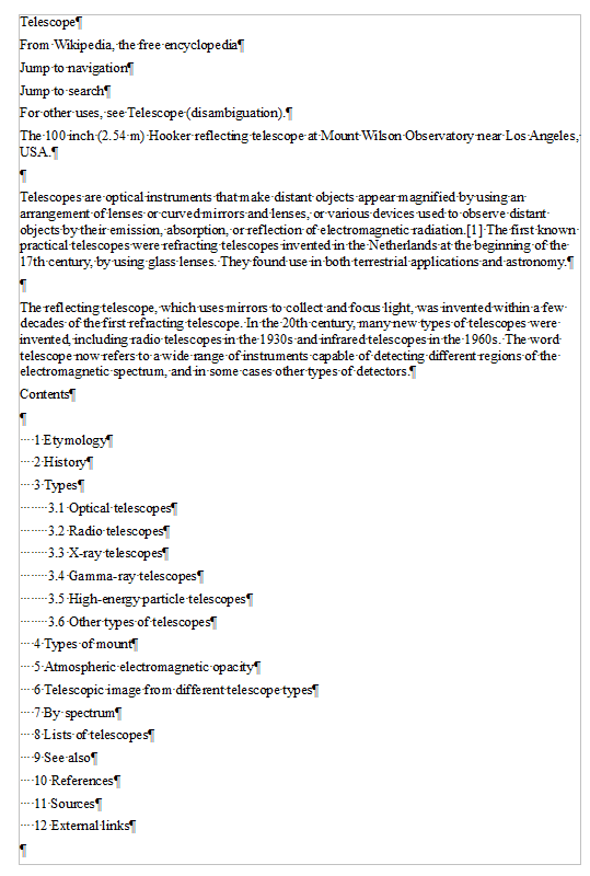 See the .odt file where I pasted it into AOO using PureText Windows+V. I set View > Non printing characters ..., to ON so you can see why the text appears as it does.