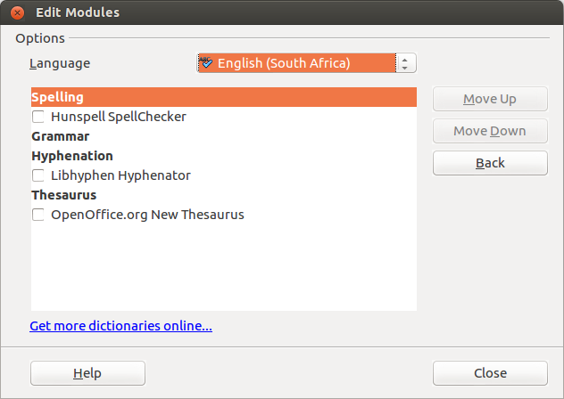 section 4). In LibreOffice, you may have to display the language list to make the check mark visible (click the drop-down list arrow).