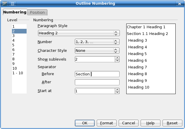 To the new users, the Writer's most confusing feature is perhaps the automatic numbering of chapters. There are two ways to accomplish it: