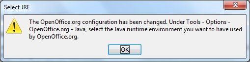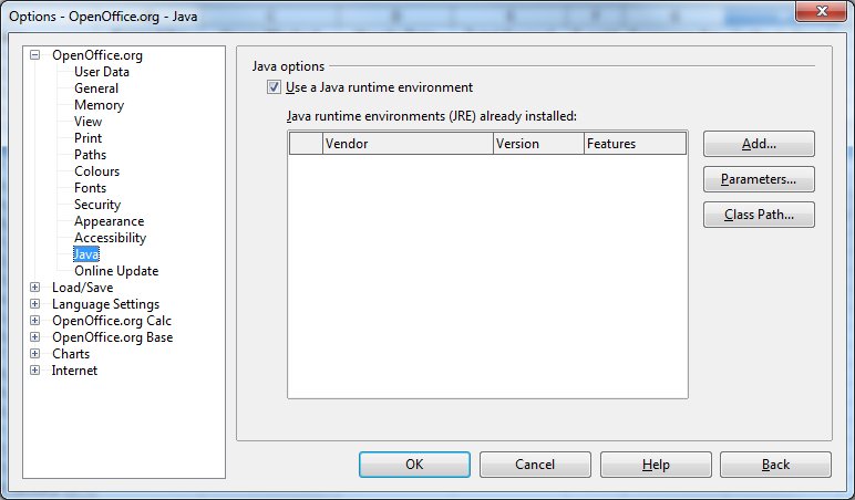 Make that Java 1.7 on Apache OO (but still the 32 bits one, as OO doesn't support 64 bits yet).
