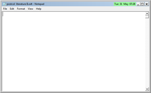 Sometimes the .odt file is corrupted, and it is NOT a zip file. In this case, when you open it with Notepad you do not see PK - the file is usually completely empty as below. If you open such a file with Writer, Writer sees it is not a ZIP file and decides it must therefore be an ASCII TEXT file (like the .txt files produced by Notepad). Writer therefore opens a pop-up ASCII Filter Options window for you to tell Writer what type of TXT file it is. When the file opens, it is full of "######" which is (I think) how Writer displayes the NUL character.