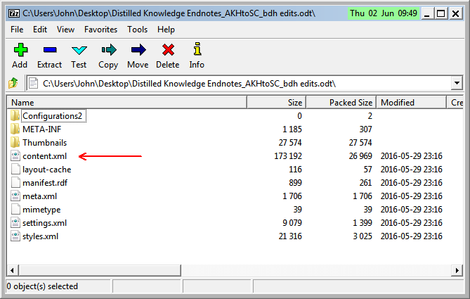 7 re-insert content.xml back into content.xml (drag it back into 7-Zip)