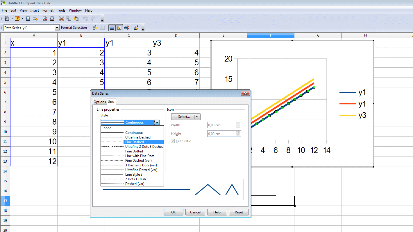But there is not a menu item or other function to adjust the default linetypes for charts in the Calc application - if I know it exactly.