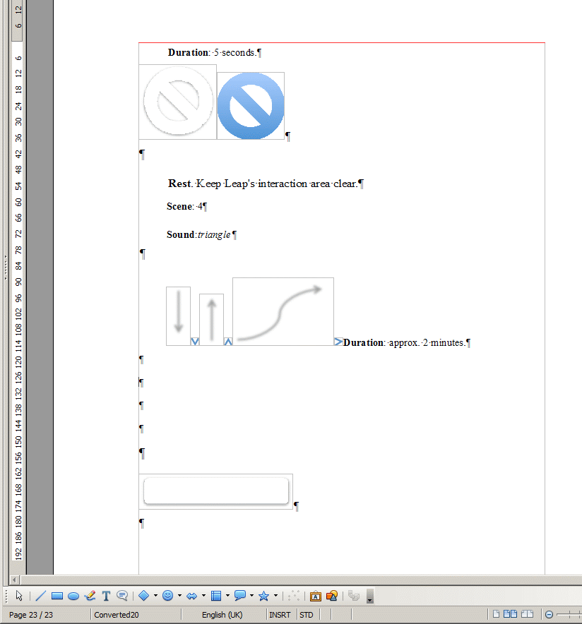 The file opens with OpenOffice and displays 23 pages where the page 23 is as below. There is substantial content below Page 23 in the XML file. "triangle" is at line 6,745 in NotePad ++ (pretty printed).