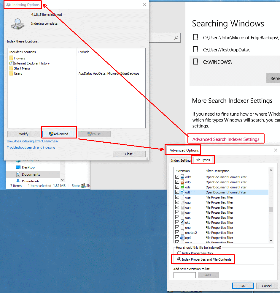 I make lists using .odt files and I would like to make them searchable using file explorer/Windows 10. Is this possible??