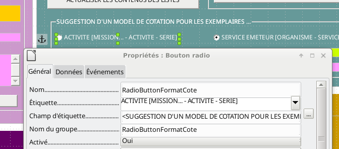 but there is also a group property with Radios Buttons and It need to use again same name as radios buttons in order to success. You can have a look at property "Nom du groupe" (Group Name) into capture attachment... (It's LibreOffice 5.2.7.2).an OptionGroup is an artificial entity (defined in MSAccess and subsequently in Access2Base)