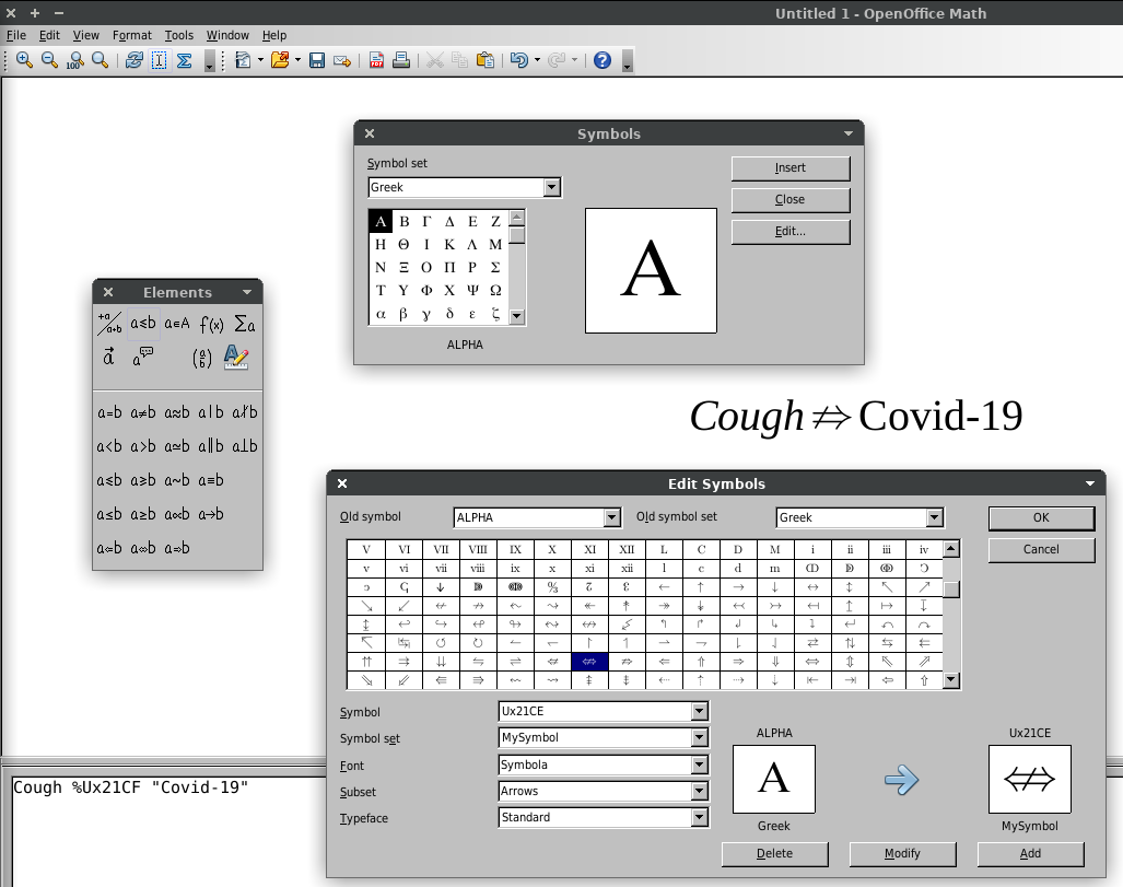 The screenshot to add the symbols (I used the font Symbola on my xubuntu machine): Please add [Solved] at the beginning of the title in your first post (top of the topic) with the *EDIT button if your issue has been fixed.