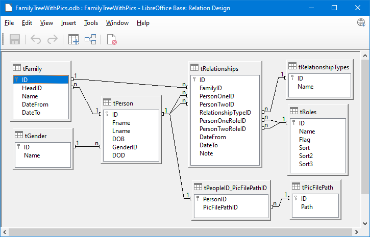 e.g. open the form 'fFamilyLinks' & select 'Daffodil Judith' who was married, divorced, remarried.