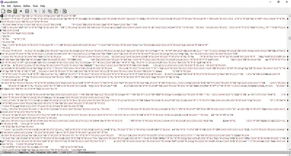 -I then tried to open it with emacs as you suggested and I get a huge amount of this :