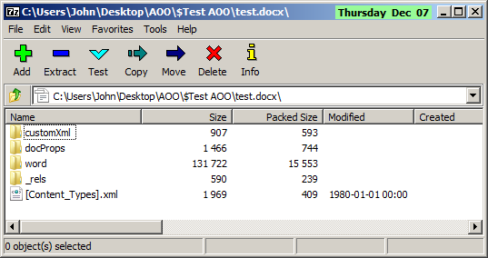 Rename the file from fred.docx to fred.ZIP.
