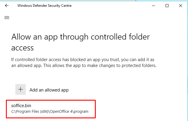 If Controlled Folder Access is ON then click Allow an app through controlled folder access > Add an allowed app.