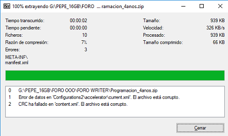 Cuando intento abrir el archivo obtengo el siguiente mensaje de ERROR: Error de lectura. Error de formato descubierto en el archivo en el subdocumento content.xml en 2,4929 (fila,col)