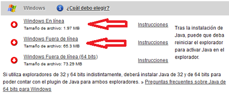 En esta página (ver imagen) tienes las versiones Java de 32 bits y 64 bits para Windows: Saludos cordiales.
