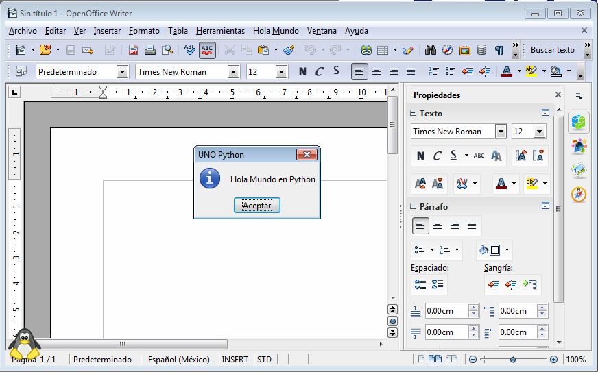 - Que se ejecute correctamente, menú Hola Mundo -> Saludar