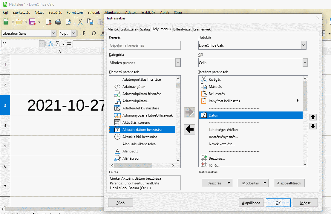 Vagy vedd fel a cellák Context (Helyi) menüjébe, annak használata se lassabb, mint billentyűkombinációt nyomkodni. Akkor biztosan nem lesz ütközés a rendszer, vagy harmadik féltől származó szoftver gyorsbillentyű kiosztásával. Használata: Jobb klikk a cellán - Dátum.