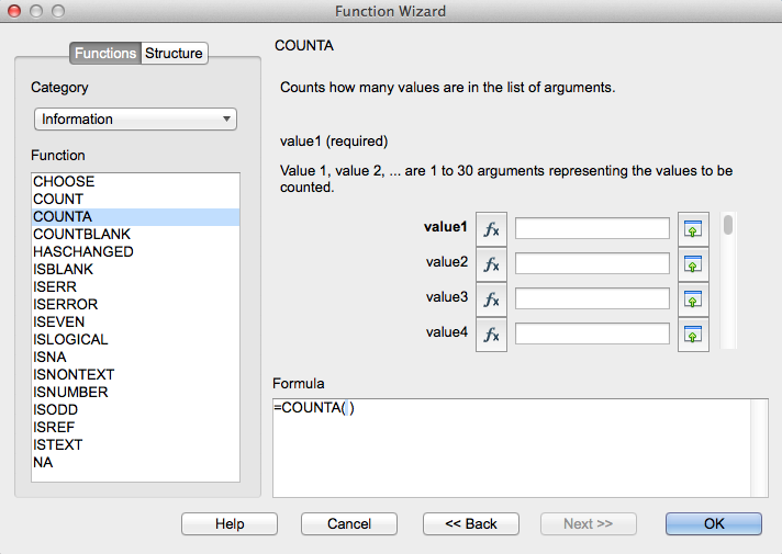 Riferendosi alla schermata che allego value1, value2, ecc. devono essere nomi campo e non valori di un singolo campo.