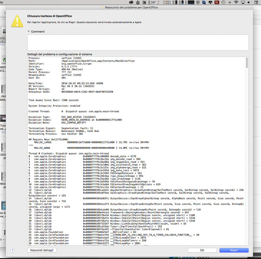 OpenOffice 4.1.3 su Mac OS X 10.12 Sierra