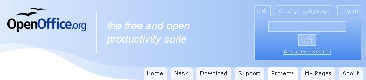 OpenOffice.org のサイトにアクセスすると、ページの右上にユーザー登録、ユーザーログインのコーナーが見えます。