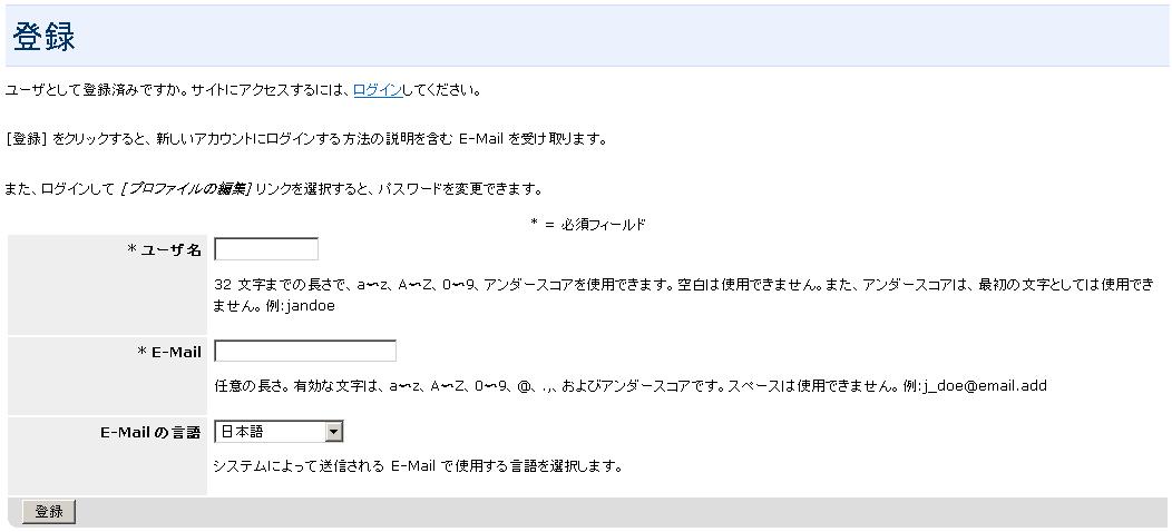 まだ登録をしていない方は、「登録」をクリックしてください。
