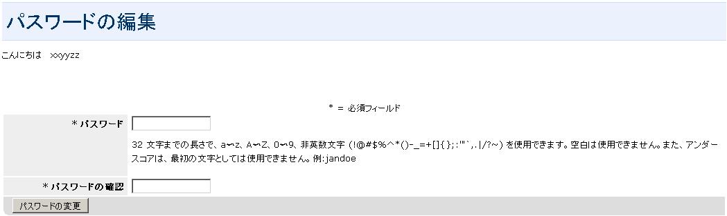 「パスワード」と「パスワードの確認」に同じパスワードを入力し、「パスワードの変更」ボタンをクリックします。