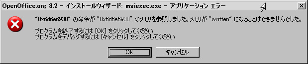 そうすると、《OpenOffice.org 3.2 - インストールウィザード:msiexec.exe -