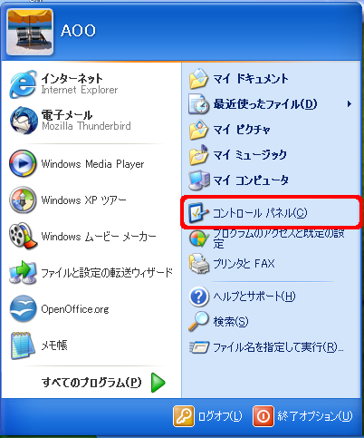 1. スタートメニューのコントロールパネルをクリックします。