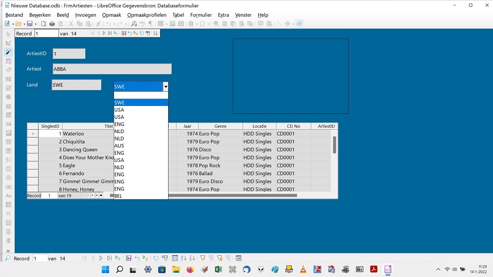 Ik heb geprobeerd een listbox te maken met de wizzard. Maar wat is hier niet goed aan? Zie bijlage. Wat is een oplossing? Noot: alles is ingevoerd via de tabellen.