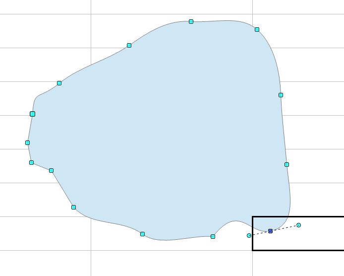 Heb voorbeeld met gebied toegevoegd, hierop zijn wel de punten te zien en kan je zien dat de lijn gekarteld raakt terwijl ik die mooi glad wil maken door de vectoren te veranderen.