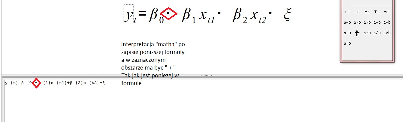 Tak jak w temacie w czym ze w zapisie nie ma błędu, lecz przy wyświetleniu formuły widnieje * (kółko po środku czyli znak mnożenia a ma być +)